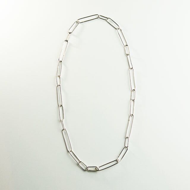 チェーンをひとつひとつ手曲げ、ロウ付けして作っています。