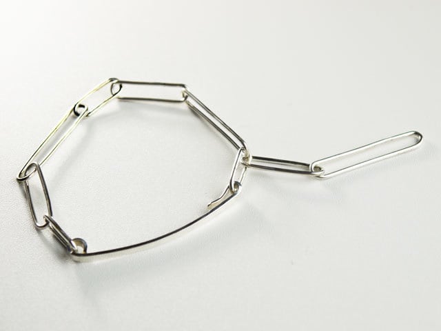チェーンをひとつひとつ手曲げ、ロウ付けして作っています。