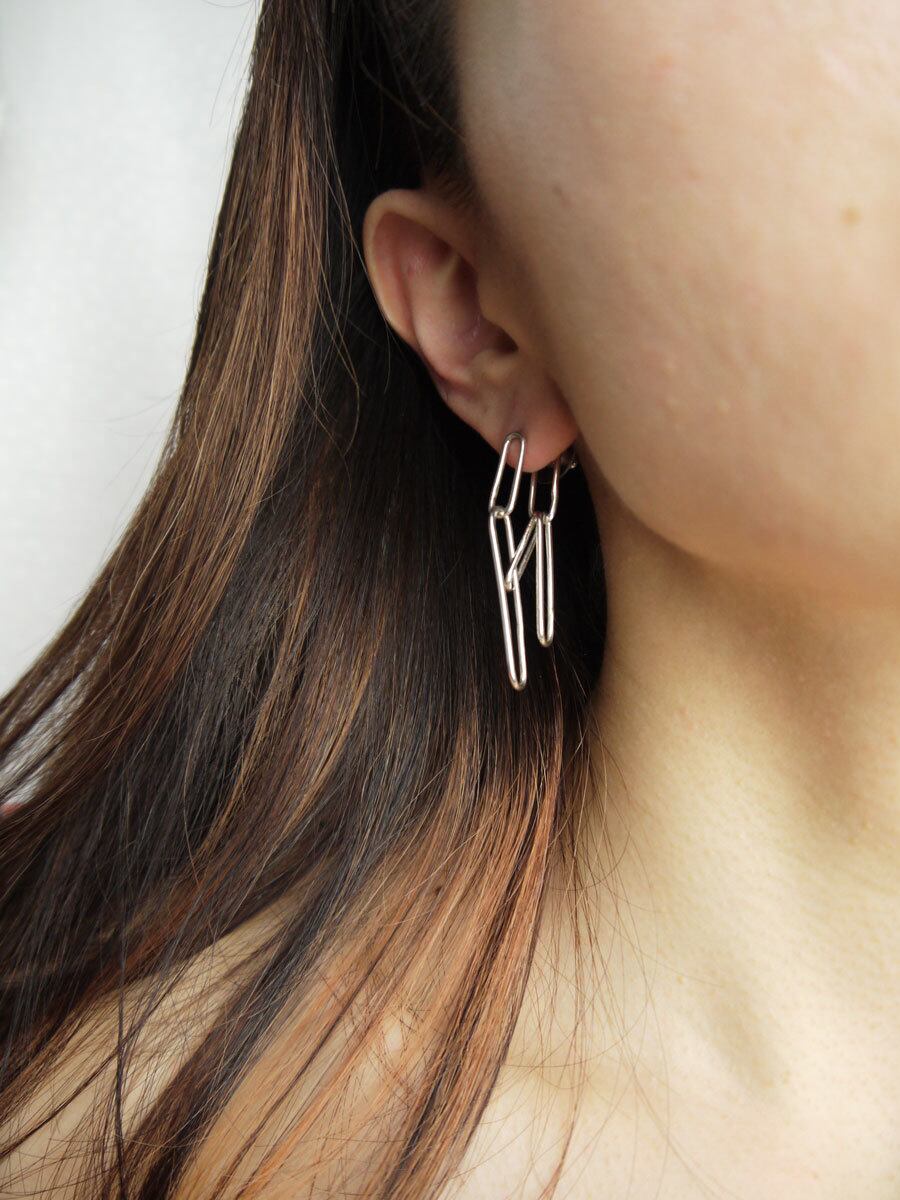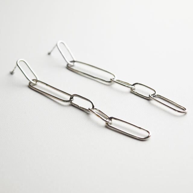 着用写真のように、後ろのポストにお好きなチェーンの部分を引っ掛けて様々なアレンジを効かせることができます。