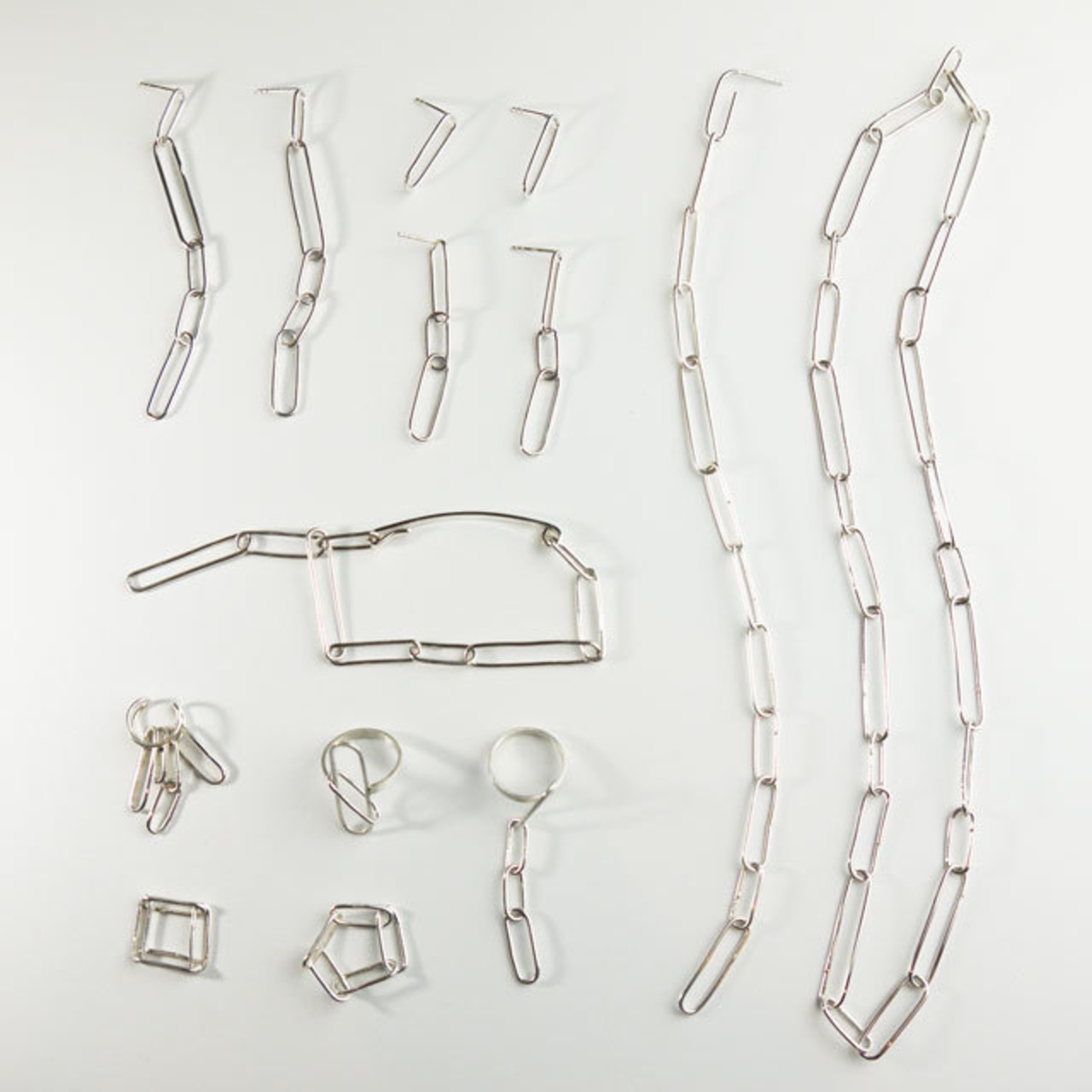 チェーンをひとつひとつ手曲げ、ロウ付けして作っています。